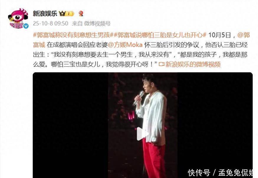了解郭富城的人都知道,他一直是位很疼爱孩子的父亲,他对于孩子性别一直保持着开明的态度。之前在演唱会上,他就明确说过,他没有刻意想要去生一个男生,从来没有。他还补充道,都是我的孩子,我都是那么爱。